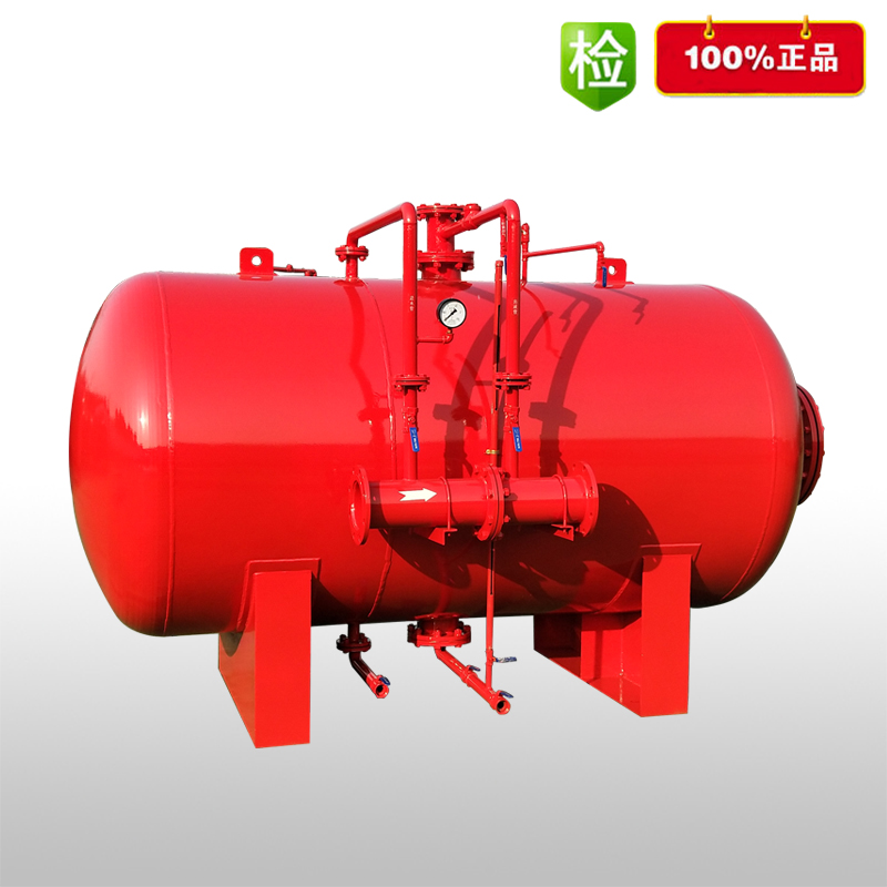 主要由帶膠囊的泡沫液壓力儲罐與利用文丘里原理制成的PHYM型壓力式比例混合器組成,當系統管網中的水流經比例混合器減壓孔板時,在孔板的前后會形成壓差。壓高處的一部分水(3%或6%)通過泡沫罐的進水管進入罐內,擠壓膠囊,將膠囊中的泡沫液通過泡沫罐的出液管擠壓至比例混合器低壓處與水混合形成泡沫混合液,形成的泡沫混合液輸出到泡沫產生設備(中、低、高倍數泡沫產生器,泡沫槍,泡沫炮等)與空氣混合產生泡沫滅火。該裝置廣泛用于油庫、化工廠、機庫、油田、燃油鍋爐、地下車庫等場所。
