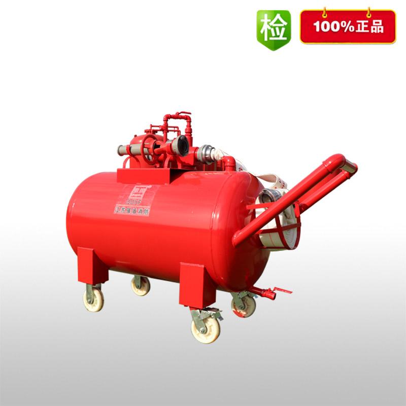 采用推車(chē)形式,在火災(zāi)發(fā)生初期時(shí),機(jī)動(dòng)、靈活地推動(dòng)該裝置到滅火現(xiàn)場(chǎng)進(jìn)行滅火。本裝置可獨(dú)立作為消防防衛(wèi)器材,也可配合大型固定式泡沫滅火系統(tǒng)起輔助補(bǔ)救作用。該移動(dòng)式泡沫滅火裝置可由消防管網(wǎng)或城市供水管網(wǎng)、消防車(chē)、手抬消防泵提供壓力水源,經(jīng)負(fù)壓比例混合器按一定的比例(3%或6%)與泡沫貯罐內(nèi)的泡沫液形成泡沫混合液,再通過(guò)空氣泡沫產(chǎn)生器形成泡沫噴出滅火。